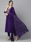 Women's Beautiful Embroidery Rayon Kurta Pant & Dupatta Set